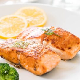 4. Frite o salmão com bastante manteiga, alguns minutos de cada lado. O limão pode ser frito na mesma panela ou ser servido cru.